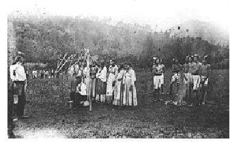 At most festivals a sacrifice of meat was made, the people took ceremonial baths in the water by plunging under seven times. Religious dances were held most of the night, special wood was gathered for the kindling of special fires, and tobacco was used in a special ceremony. These festivals were held as a Thanksgiving to God for the fruits of the earth. Prayers were said that God might bless the corn and meat during the year and make the people healthful. The preliminary Green Corn Feast was held in August and the main Corn Feast was held in the middle or latter part of September, when the corn was ripe.